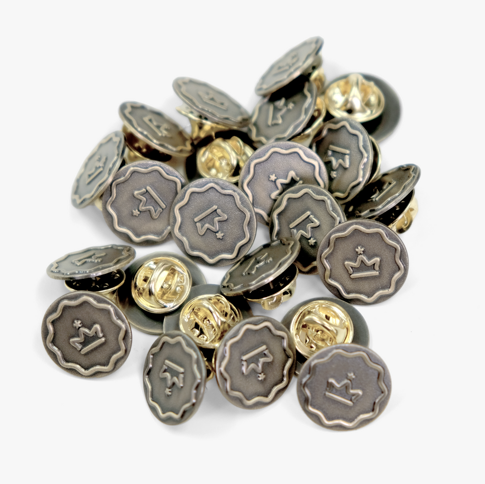 Our crown logo (which can be seen embedded into the tops of our handles) is a defining feature of our brand. As a bit of fun we decided to take one of our metal logos and weld a pin fixture onto the back.