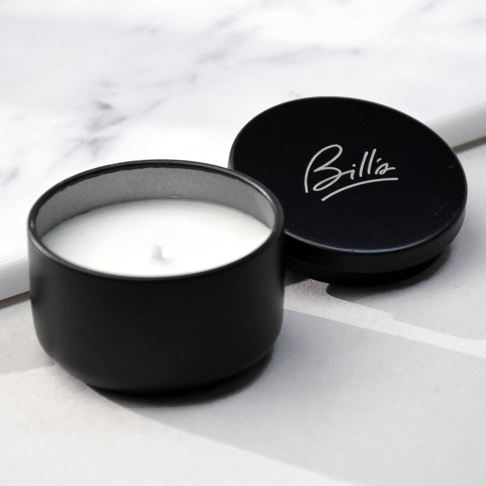 Larger 2" diameter unscented, hand-poured Soy candle, approx. 2oz. Includes metal tin with lid for ease of travel and storage.