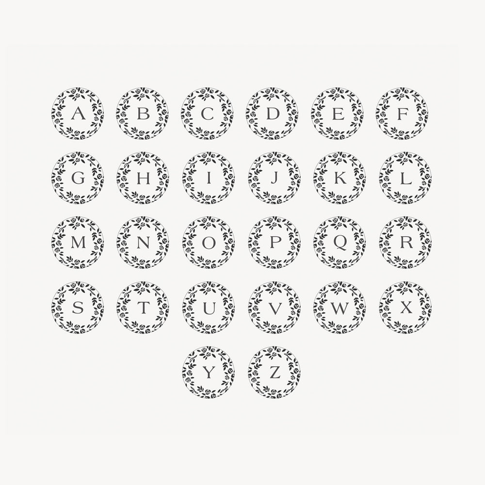 Floral Monogram wax seal design, intricately engraved onto our well-renowned 'Shiny' mirror-finish brass stamp head. Universal M8 screw fitting works with existing Stamptitude handles and other name brands.